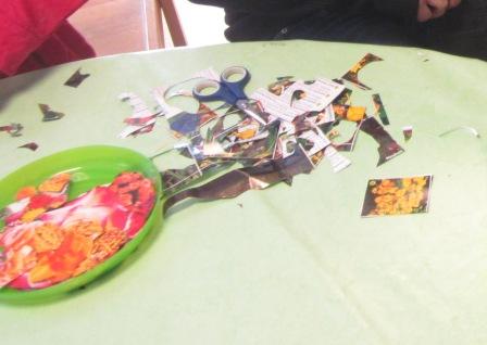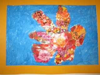 Aus Pflanzenkatalogen haben wir ganz viele Blumenbilder ausgeschnitten,