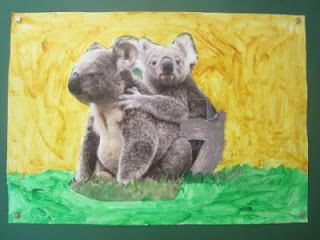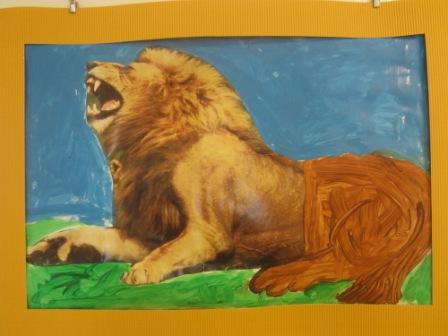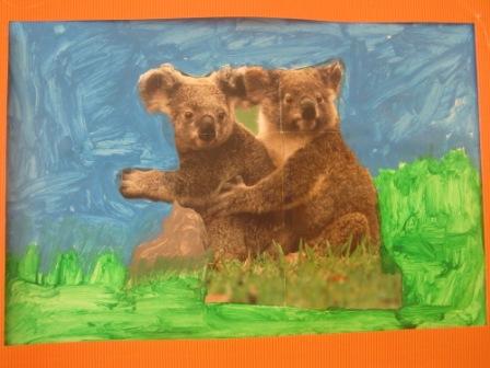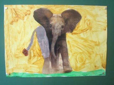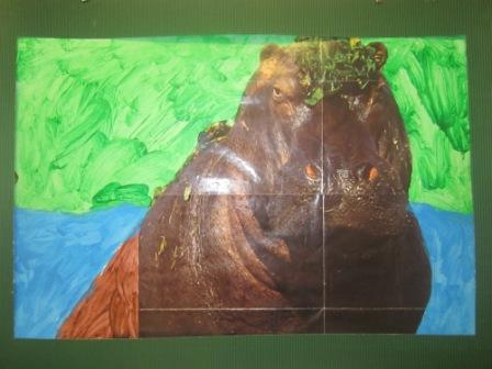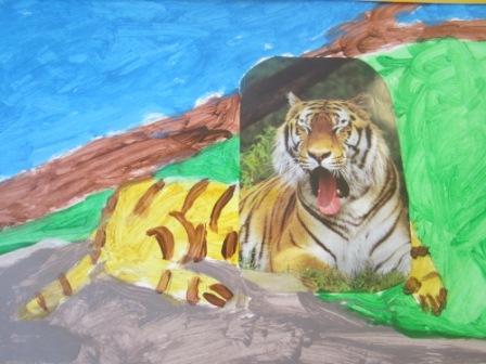 Aus Postern wurden die Tiere ausgeschnitten, aufgeklebt und dann der HIntergrund dazu gemalt.