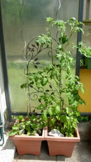 Links, der etwas mickrige Tomatenstock ist übrigens "bio"