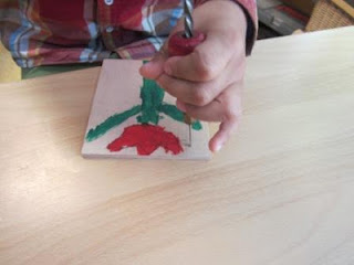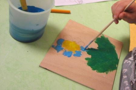 könnte man es auch nennen. Man kann kleine Holztäfelchen mit Acrylfarben bemalen: